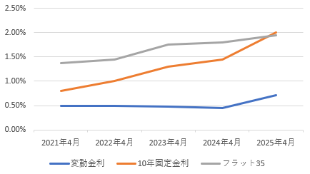 過去5年の各金利のおおまかな推移は以下のとおりです。