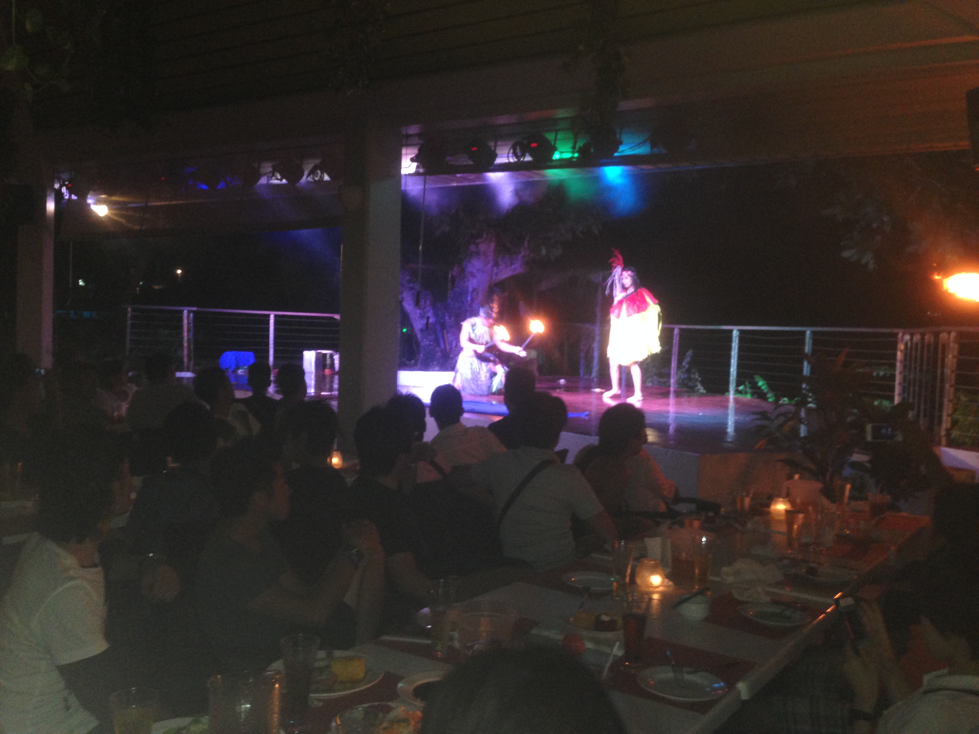 華やかなポリネシアンダンス・ファイアーダンスを見ながらの