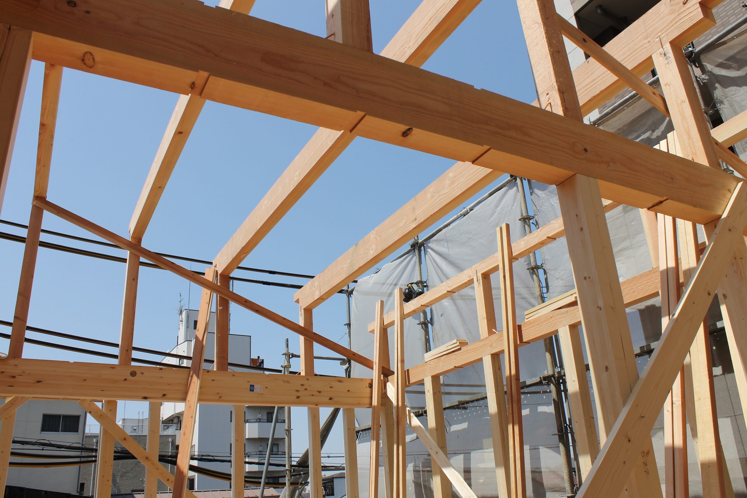 段取り良くあっという間に軸組が組みあがっていく様は、