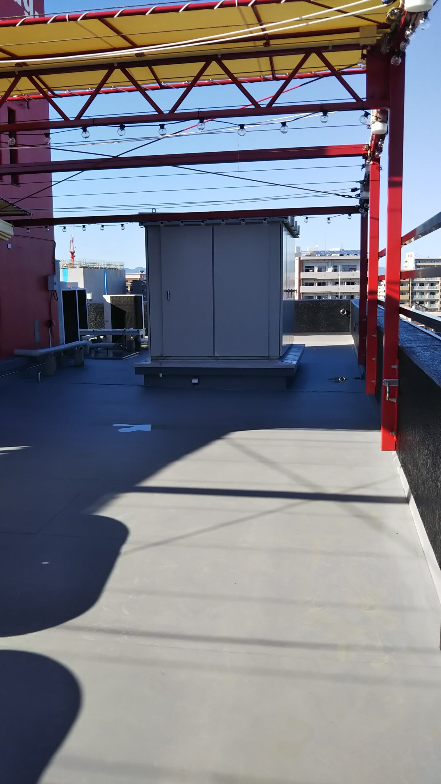 今日は、ちょうど会社の屋上の防水工事を行っていたので