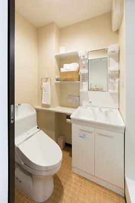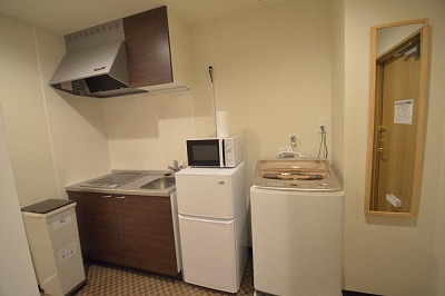 ベッドとテーブル・イスもあるのでお食事も出来ますし、キッチン・浴室・トイレ・洗面も各部屋に完備しているので他の宿泊客に気兼ねすることなくゆっくり過ごせます。