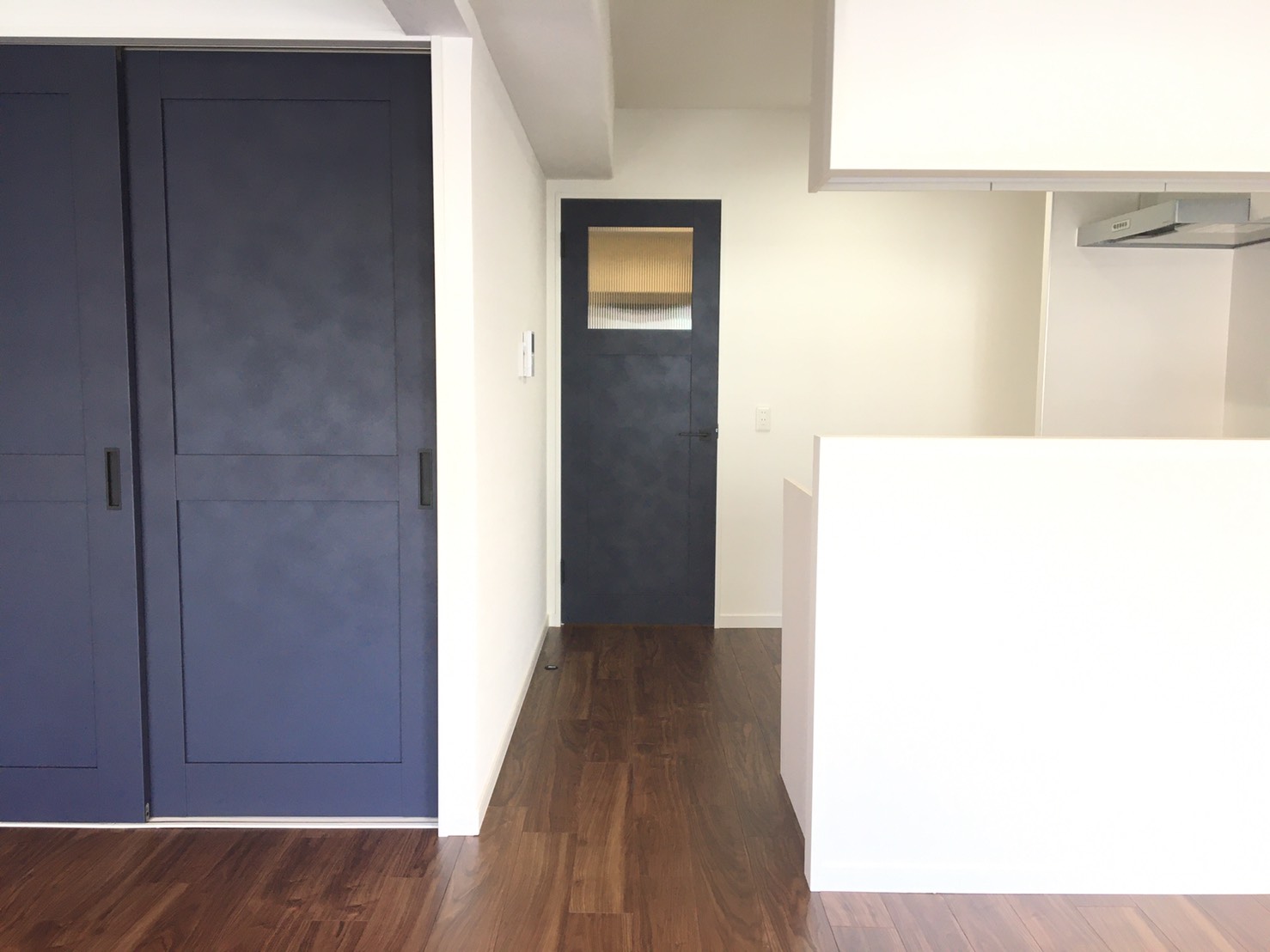 建具はブラックアイアン取手でヴィンテージ感が漂う
