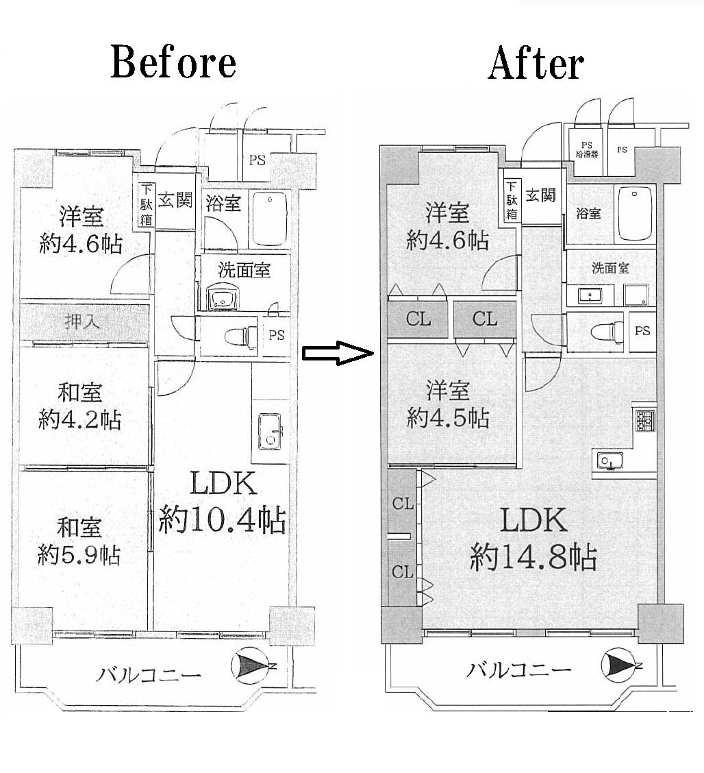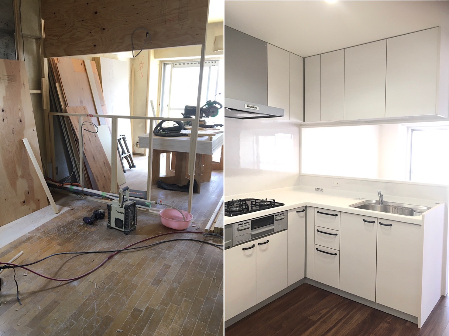 元の和室をなくしLDKを広くとり L型キッチンを採用し