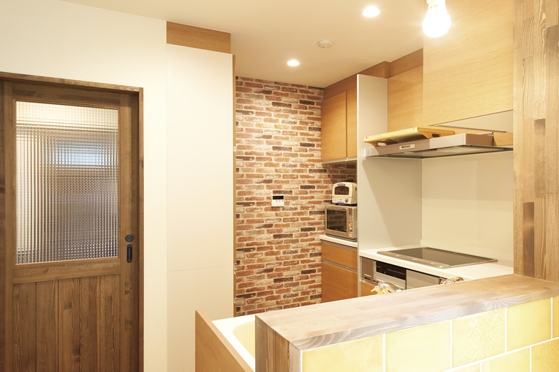 キッチン腰壁のタイルや、玄関袖壁のタイルなど