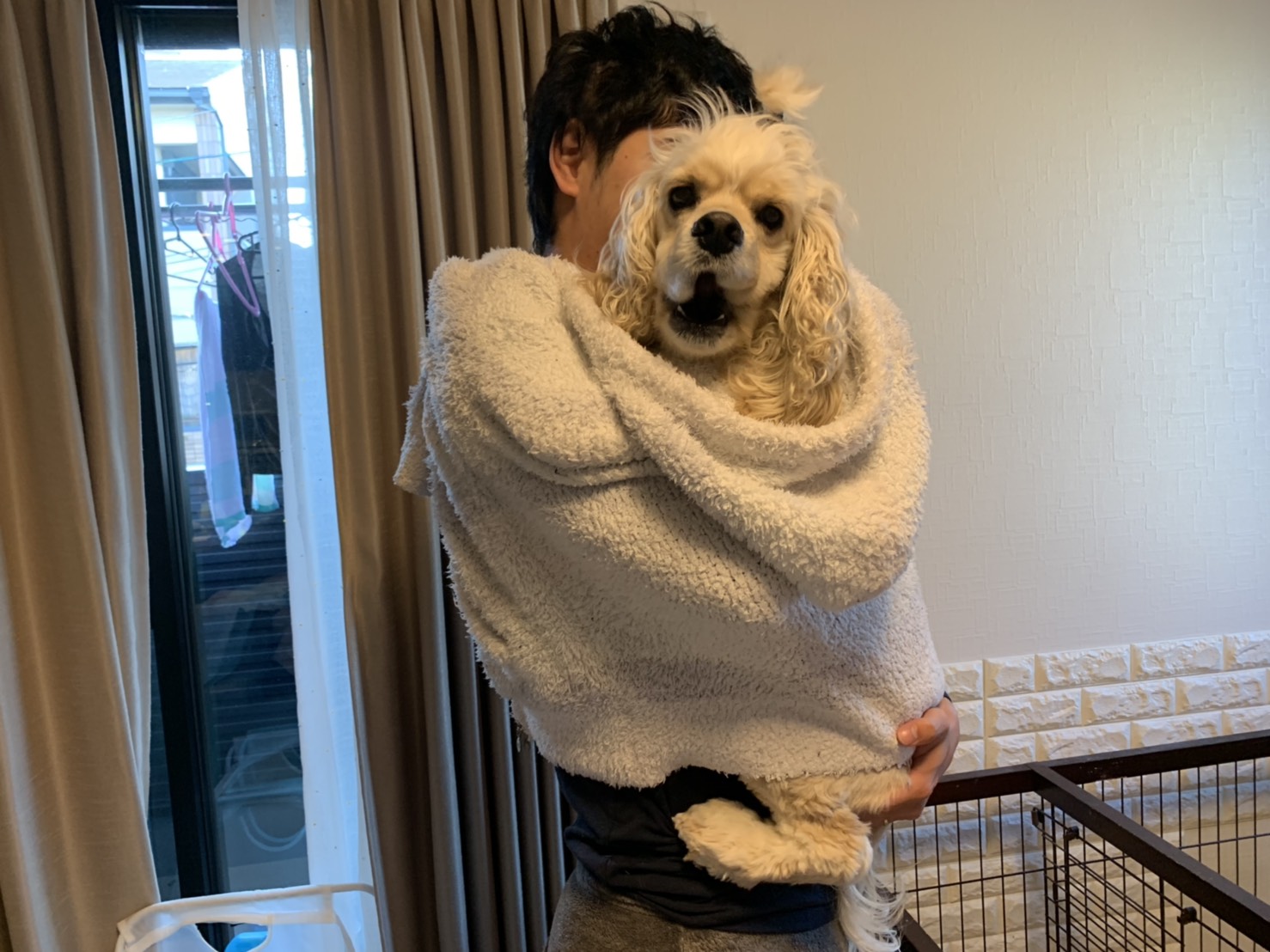 朝ね、寒くてぎゅってします。あったかいし、幸せです。