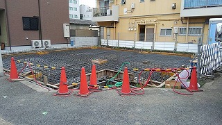 基礎では建物自体の重量を支える為、コンクリートの厚さも分厚く,
