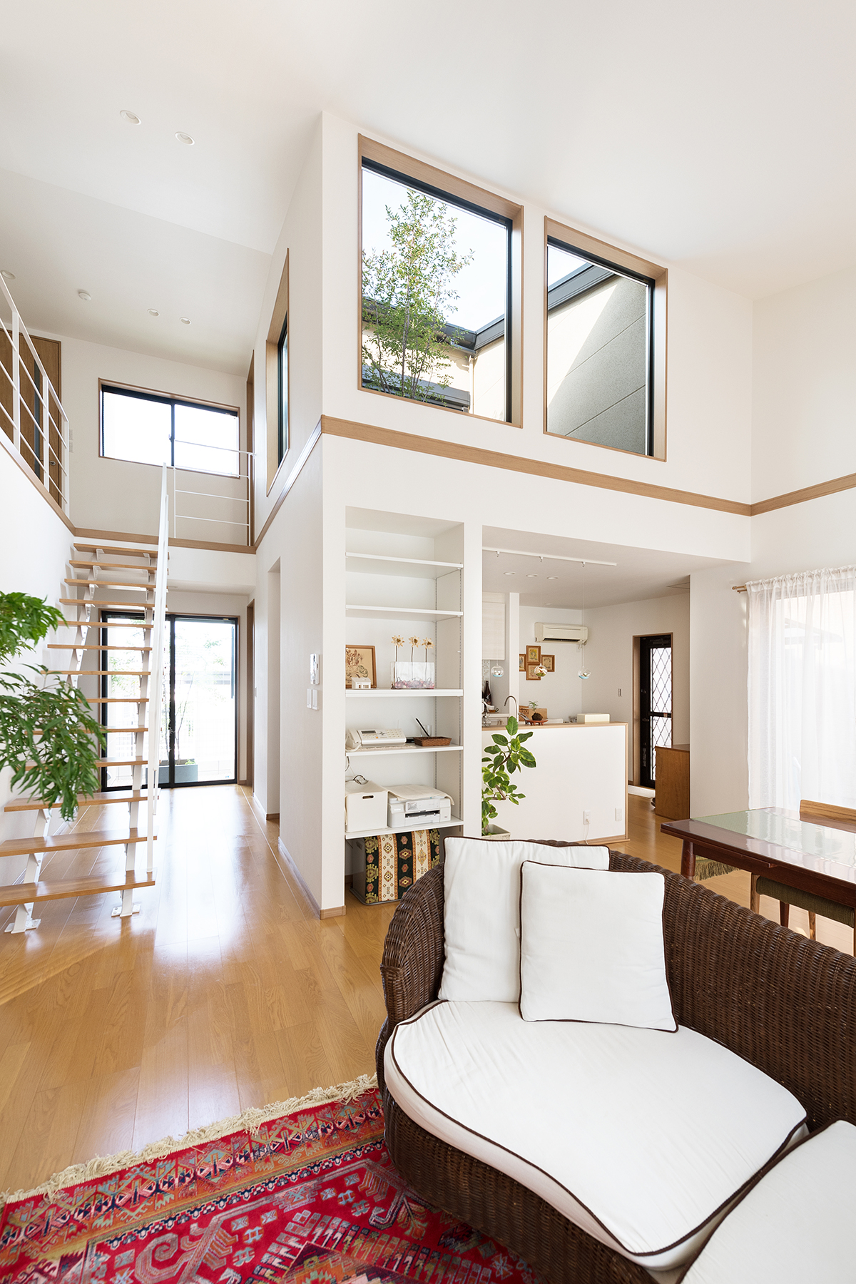 こだわりの空間で「ホッ」と一息。 平屋風で、和を基調とした外観。 勾配天井・オレンジのクロスとこだわりの和室は、つい長話してしまうような落ち着くデザイン。 また吹き抜け・中庭により家全体が明るく開放感で心地が良く家族とのコミュニケーションも弾む空間に。 2階建て 木造 寝そべりたくなる家 素材にこだわる、品格ある住まい 関連記事 中庭を囲む開放的な間取りの住まい 2026年1月29日 aoshimatei鈴-SUZU- 2026年1月13日 非日常を演出するインドアゴルフ店 2025年11月26日 家事動線と暮らしやすさにこだわった快適な3階建ての家 2025年10月24日 ホワイトが映える上質な空間 2025年9月12日 街に溶け込み、日常を彩るお弁当屋さん 2025年9月3日 築50年超マンションの一室をリフォーム 2025年8月29日 片付けやすく家事もラクなシンプルモダンな家 2025年4月21日